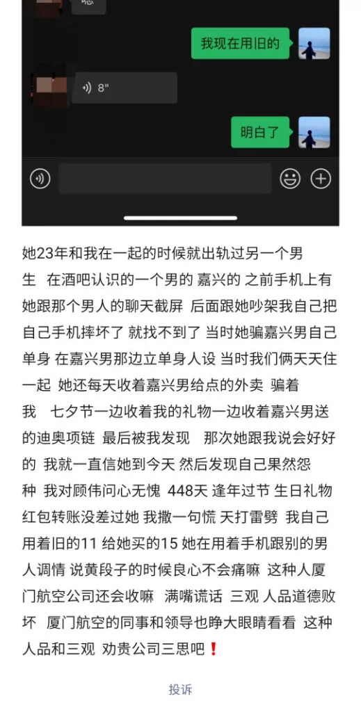 一顿追问下才知道,空姐在嘉兴立着单身人设,就没想和苦主结婚,只把苦主当做ATM。空姐还想着一步到位落户上海呢。
