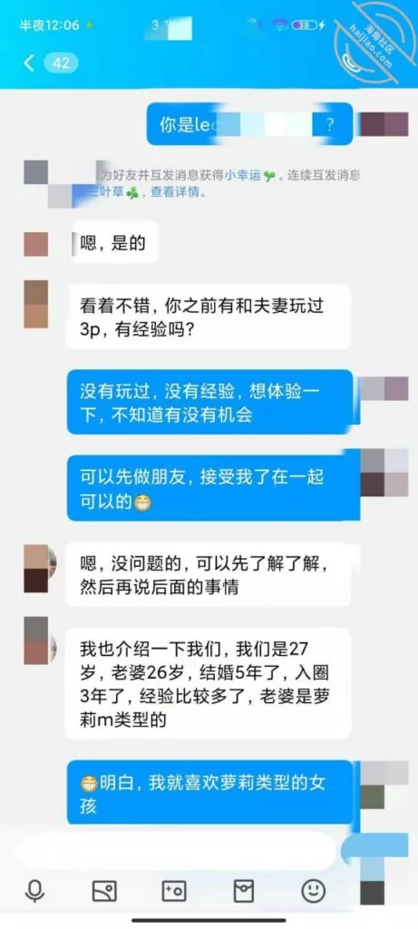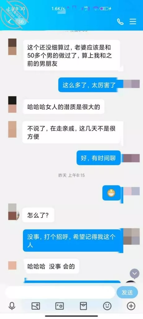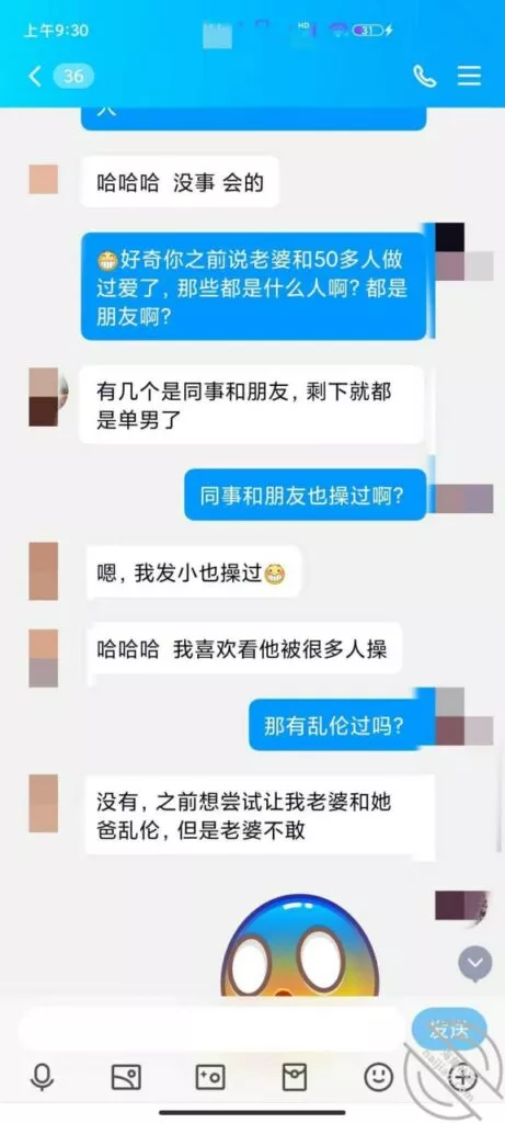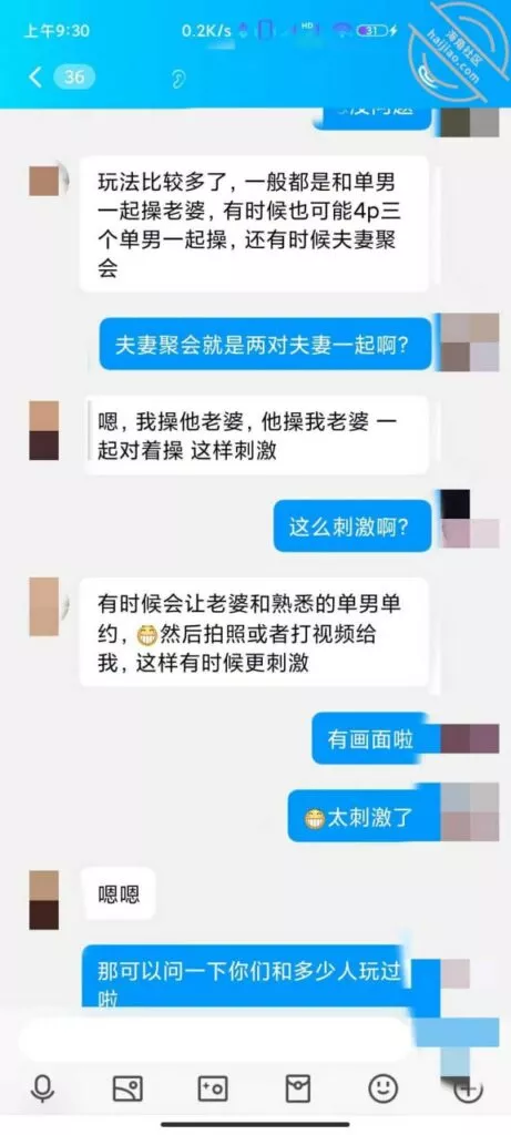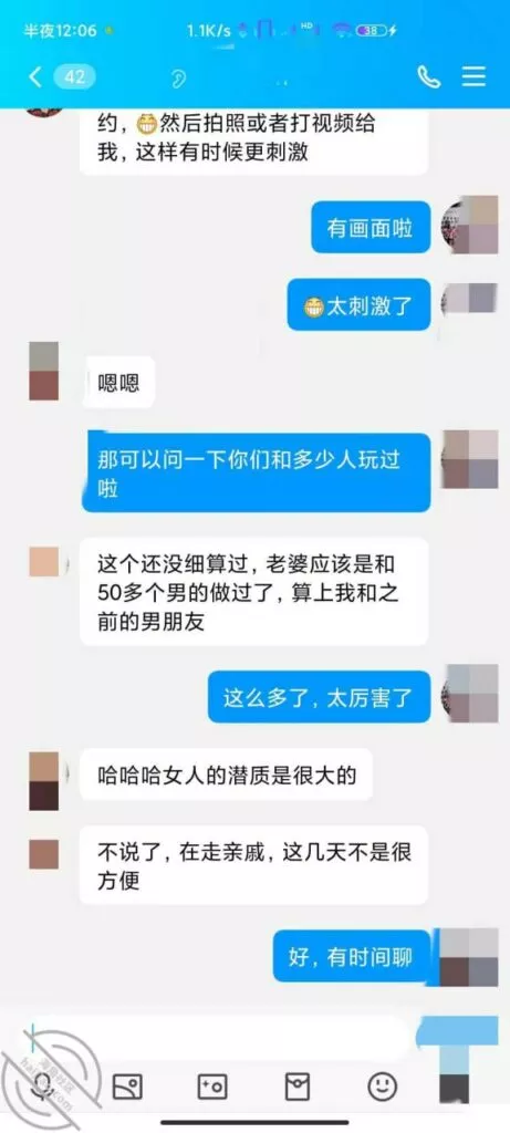 上次发帖,根据兄弟的提示成功加上好友,但是没经验不知道怎么说,有个兄弟私聊说自己做过单男,教了我开场白,说我是本地的一个单男,介绍自己的身高体重发照片,表示一些尊重,但是我发的照片是我朋友的照片,他们没见过 哈哈哈。看说话的语气估计是妹夫,妹夫说他们入圈三年了,应该是19年就已经在玩这个了,那时候小外甥才出生,应该是生完小外甥之后玩的,之后妹妹也打过两次胎,不会是被别人弄大了肚子吧。妹夫承认了他有绿帽癖好,妹妹也喜欢被人Cao,看来妹妹这些年真的没少经历,前几天回家呆了两天,换下来一条内裤 ,