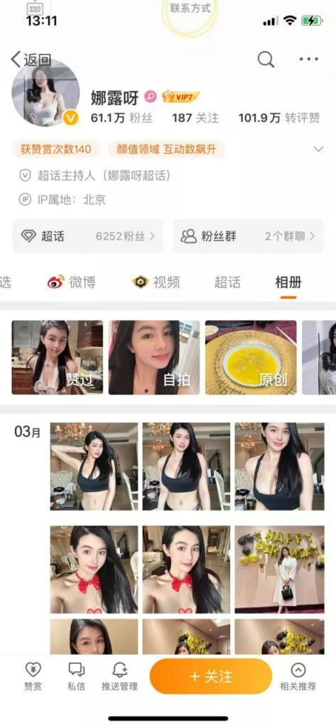 抖音微博70万粉丝网红博主娜露呀早期黑料被扒曾做过外围女郎